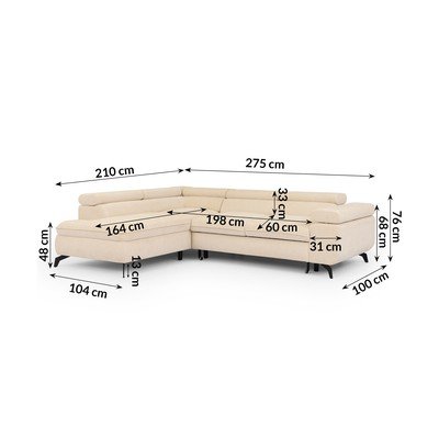 Z tkaniny szenilowejCzęściowo rozkładany/rozkładany/ze schowkiemLewostronny/w kształcie litery LKremowyOdpowiedni dla zwierząt domowych/plamoodpornyCzteroosobowySzerokość 275 cm