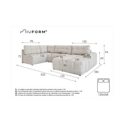 Rozkładany/ze schowkiemLewostronnyKremowyPowyżej 4 osóbSzerokość 333 cmGłębokość 187 cmGłębokość siedziska 56 cm