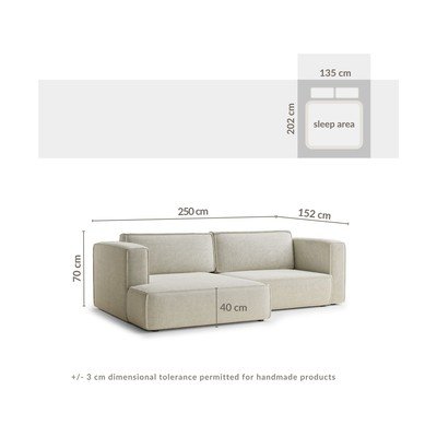 Z tkaniny szenilowej, rozkładany/ze schowkiem, lewostronny/z szezlongiem, kremowy, trzyosobowy, szerokość 250 cm, głębokość 152 cm, głębokość siedziska 65 cm