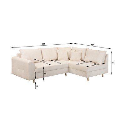 Kremowy sztruksowy narożnik (prawostronny) Ariella – Ropez