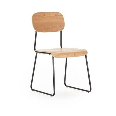 Czarno-naturalne krzesła w dekorze jesionu zestaw 2 szt. Aira – Marckeric
