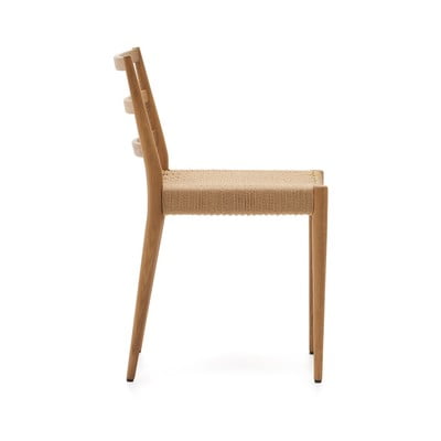 Krzesło wykonane jest w całości z naturalnych materiałów – siedzisko składa się z ręcznie plecionej liny papierowej, konstrukcja wykonana jest z litego drewna z certyfikatem FCS gwarantującym jego zrównoważone pochodzenie.