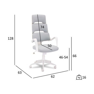Dzięki regulowanej wysokości siedziska w zakresie 46-54 cm, funkcji odchylania i regulowanemu zagłówkowi można łatwo dostosować krzesło do swoich potrzeb.