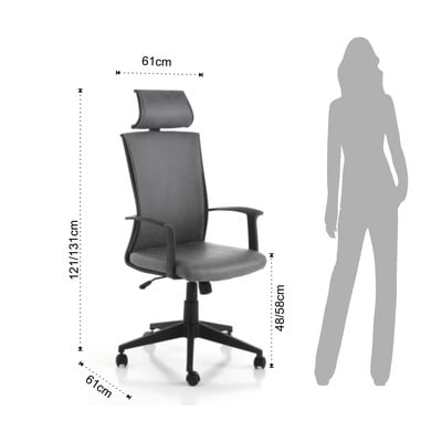 Krzesło biurowe OntarioTapicerowane, na kółkach/z regulowaną wysokością/z podłokietnikami, szare, nośność 114 kg, wysokość siedziska 48-58 cm