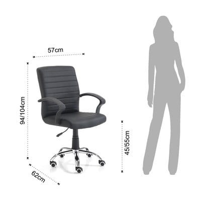 TapicerowaneNa kółkach/z regulowaną wysokością/z podłokietnikamiCzarneNośność 114 kgWysokość siedziska 45-55 cm