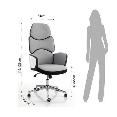Krzesło biurowe ToledoTapicerowane, na kółkach/z regulowaną wysokością/z podłokietnikami, szare, nośność 114 kg, wysokość siedziska 45-55 cm