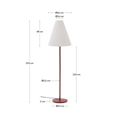 Lampa stojąca Navat marki Kave Home wniesie elegancki, a jednocześnie minimalistyczny styl do Twojego wnętrza. Lampa wykonana jest z metalu z wykończeniem w kolorze terakoty i uzupełniona białym materiałowym kloszem w kształcie stożka. Lampa jest kompatybilna z żarówką E27 o maksymalnej mocy 40 W. Żarówka nie jest dołączona do zestawu.