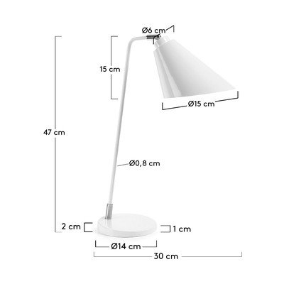 Lampa stołowa PritiZ metalowym kloszem, metalowa, do kontaktu, biała, wysokość 47 cm