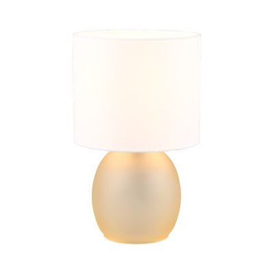 Z tekstylnym kloszem, tekstylna/szklana, do kontaktu, biała/w kolorze złota, wysokość 29 cm