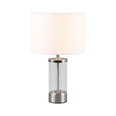 Z tekstylnym kloszem, metalowa/tekstylna, do kontaktu, w kolorze srebra, wysokość 33,5 cm