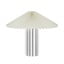 Dolna część lampy składa się z cylindrycznej podstawy z charakterystycznym pionowym żebrowaniem, które nadaje jej elegancki i uporządkowany wygląd. Ogólny kształt lampy przypomina grzyba, co czyni ją interesującym elementem na stoliku nocnym, komodzie lub biurku.