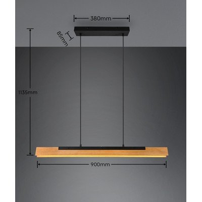 LED, z drewnianym kloszem, metalowa, w kolorze matowej czerni, 8,5x90 cm, wysokość 150 cm