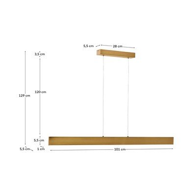 LEDZ metalowym kloszemMetalowaW kolorze złota5,5x101 cmWysokość 129 cm