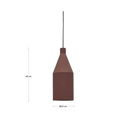 Lampa wisząca Peralta w kolorze terakoty z metalowym kloszem to ekskluzywny projekt marki Kave Home. Lampa jest kompatybilna z żarówkami E27 o maksymalnej mocy 40 W. Żarówka nie jest dołączona do zestawu.