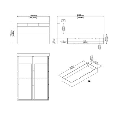 Praktyczne schowki w postaci dwóch szuflad pod łóżkiem i otwartego schowka w wezgłowiu zapewniają mnóstwo miejsca na Twoje rzeczy.