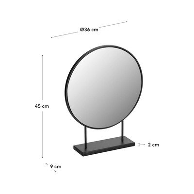 Lustro kosmetyczne Libia marki Kave Home to praktyczny i stylowy dodatek, który odnajdzie się w każdym wnętrzu. Dzięki swojemu okrągłemu kształtowi i metalowej konstrukcji doskonale pasuje na toaletkę, ale równie dobrze sprawdzi się w przedpokoju czy łazience. Niezależnie od miejsca, w którym je postawisz, zawsze będzie prezentować się znakomicie.