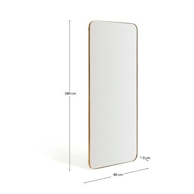 Lustro ścienne Marco marki Kave Home zachwyca minimalistycznym designem i czystymi liniami. Jego cienka, metalowa rama nadaje mu solidności i eleganckiego wyglądu, a zaokrąglone rogi delikatnie łagodzą całość, tworząc przyjemny dla oka efekt.