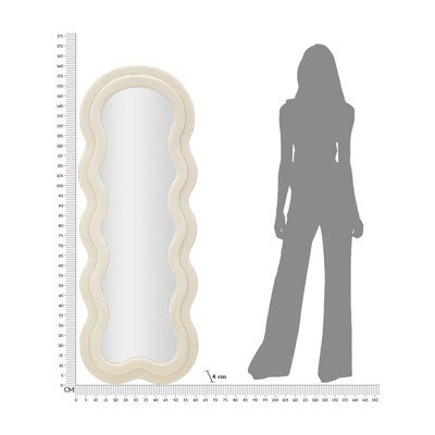 Lustro Teddy marki Mauro Ferretti to eleganckie lustro ścienne lub podłogowe z drewnianą ramą. Rama pokryta jest przyjemną tkaniną bouclé, która nadaje jej miękki i ciepły wygląd. Jego miękkie i faliste kształty tworzą zabawny i nowoczesny design, który ożywi każde wnętrze. Sama powierzchnia lustra ma wymiary 39 x 137 cm.