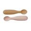Łyżeczki są wykonane z silikonu spożywczego, który jest hipoalergiczny, sterylny i bezpieczny w kontakcie z żywnością. Materiał ten jest nietoksyczny, bezwonny i nie zawiera szkodliwych substancji chemicznych, takich jak BPA, lateks, ołów czy ftalany. Jest również przyjazny dla środowiska, a jego wysoka trwałość sprawia, że nadaje się do długotrwałego użytkowania. Łyżki zostały przetestowane zgodnie z normą EN 14372.