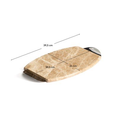 Deska do serwowania Adoma marki Kave Home posiada wyrafinowany i ponadczasowy charakter, który wniesie funkcjonalność i styl do każdej kuchni. Wykonana jest z marmuru, materiału znanego ze swojej trwałości i elegancji, uzupełnionego metalowymi detalami, które nadają jej nowoczesnego charakteru. Owalny kształt i marmurowy wzór sprawiają, że jest to piękny dodatek.