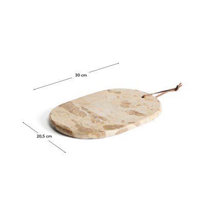 Taca jest zarówno funkcjonalna, jak i dekoracyjna. Trwałość marmuru w połączeniu z ponadczasowym designem gwarantuje długą żywotność i łatwe dopasowanie do różnych stylów wnętrz. Dla ułatwienia zawieszenia, wyposażono ją w praktyczny skórzany sznurek.