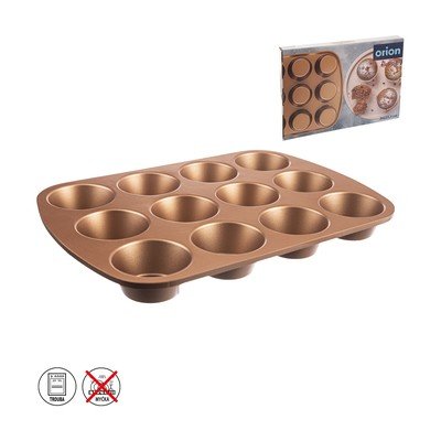 Metalowa forma do muffinów marki Orion z nieprzywierającą powierzchnią stanie się niezastąpionym pomocnikiem podczas pieczenia pysznych muffinów, babeczek lub słonych przekąsek. Forma wykonana jest z wysokiej jakości metalu i posiada 12 otworów.