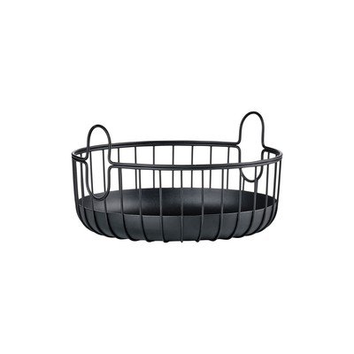 Metalowy koszyk o nowoczesnym, prostym designie może być używany do przechowywania owoców lub przypraw. Stabilna podstawa i dwa praktyczne uchwyty ułatwiają przenoszenie. Malowana proszkowo stal jest łatwa do czyszczenia.