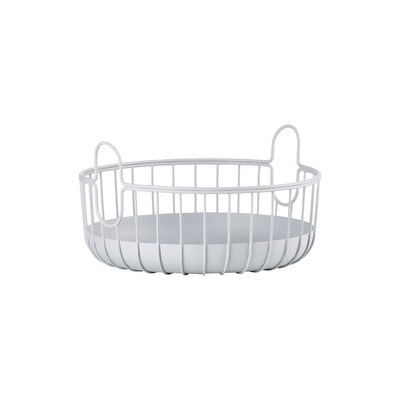Metalowy koszyk o nowoczesnym, prostym designie może być używany do przechowywania owoców lub przypraw. Stabilna podstawa i dwa praktyczne uchwyty ułatwiają przenoszenie. Malowana proszkowo stal jest łatwa do czyszczenia.