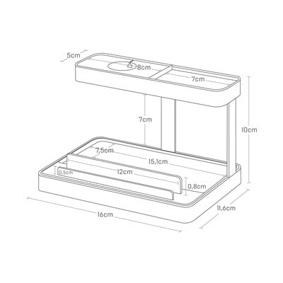 Poręczny stojak Yamazaki umożliwia przechowywanie i ładowanie wszystkich urządzeń w jednym miejscu. Na górze znajduje się otwór na kabel i silikonowa podkładka na smartwatch. Na dole znajduje się uchwyt na telefon, tablet i miejsce na inne akcesoria.