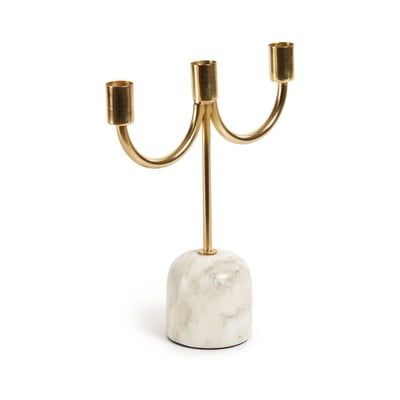 Wykonany z połączenia marmuru i metalu w kolorze złotym, świecznik Perca marki Kave Home będzie wyrazistą ozdobą każdego stołu. Ze względu na naturalną naturę materiału, uzyskany kolor i tekstura każdego produktu mogą się nieznacznie różnić. Jednak fakt ten nie jest wadą, a sprawia, że każda sztuka jest prawdziwym unikatem.