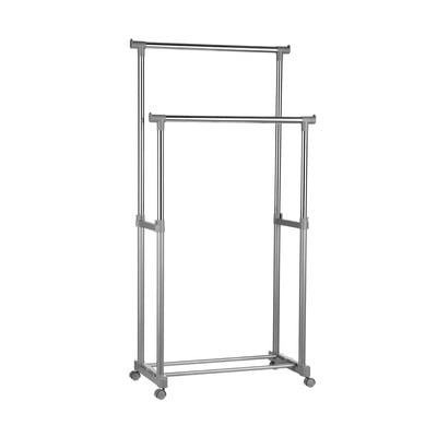 Stojak na ubraniaTeleskopowy/na kółkach, metalowy, w kolorze srebra, 80x43 cm, wysokość 152 cm