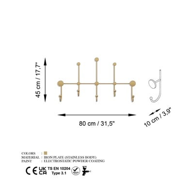 MetalowyW kolorze złotaSzerokość 80 cmWysokość 45 cmGłębokość 10 cm