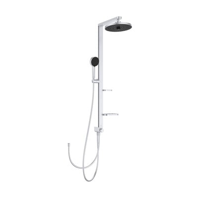 - Drążek prysznicowy (111,3 cm długości) i wąż IdealFlex (175 cm długości) wyposażone w głowicę ceramiczną i przełącznik prysznica ręcznego, dwie półki o regulowanej wysokości i przesuwany uchwyt prysznica ręcznego.