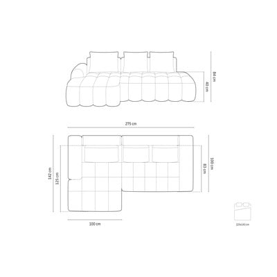 Aksamitny, rozkładany/ze schowkiem, lewostronny/z szezlongiem, morski, czteroosobowy, szerokość 275 cm
