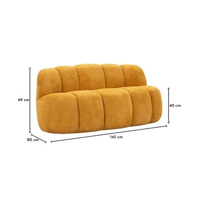Z materiału bouclé, musztardowa, dwuosobowa, szerokość 145 cm