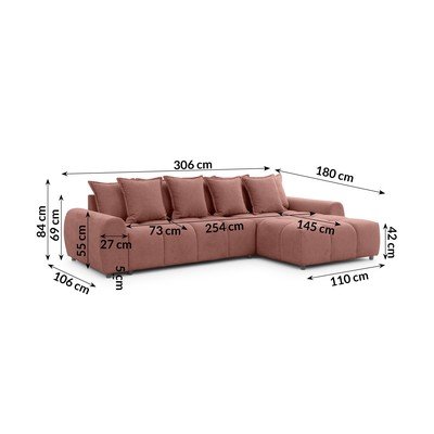 Prawostronny/z szezlongiem, w kolorze terakoty, wodoodporny/plamoodporny, czteroosobowy, szerokość 306 cm