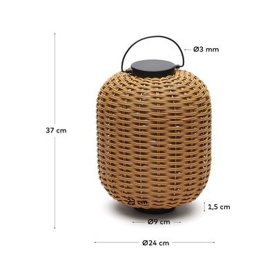 Lampa stołowa Saranella, zaprojektowana przez projektanta Carlosa Guijarro ekskluzywnie dla marki Kave Home, tworzy przyjemną atmosferę wieczorem, w pomieszczeniach lub w zadaszonych przestrzeniach zewnętrznych. Możesz wybierać spośród 3 intensywności ciepłego światła. Uchwyt ułatwia przenoszenie, lampę można również powiesić.