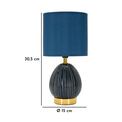 Z tekstylnym kloszem, ceramiczna, do kontaktu, niebieska, wysokość 30,5 cm