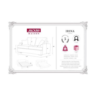 Rozkładana sofa Jalouse Maison Irina jest stylowa, wygodna i wielofunkcyjna. Pasuje do każdego wnętrza i nadaje wnętrzu francuskiej elegancji.