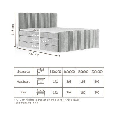 Oprócz komfortu, łóżko zapewnia również praktyczną przestrzeń do przechowywania, która pomoże utrzymać porządek w sypialni. Solidna konstrukcja i nośność 240 kg sprawiają, że łóżko jest trwałe i wytrzymałe.