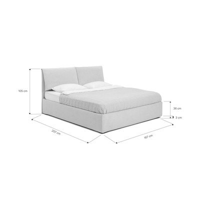 Zagłówek ma regulowaną wysokość w zakresie do 15 cm, dzięki czemu można go łatwo dostosować do rodzaju materaca i własnych potrzeb. Poduszki zagłówka można w każdej chwili odczepić i mieć gładki, równy zagłówek. Niezależnie od tego, czy czytasz, relaksujesz się, czy po prostu chcesz, aby wyglądało idealnie – z tym łóżkiem wszystko to będzie możliwe.