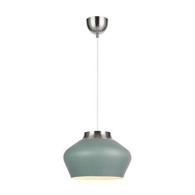 Lampa wisząca KomZ metalowym kloszem, metalowa, szara/w kolorze srebra, wysokość 171 cm