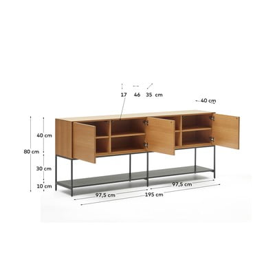 Komoda VedranaW dekorze dębu, z płyty MDF, powłoka: fornir/powłoka: lakierowanie, w naturalnym kolorze, szerokość 195 cm, wysokość 80 cm, głębokość 40 cm
