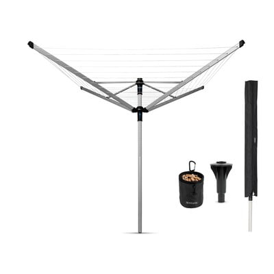 Dwukierunkowe linki mocujące są odporne na naciąganie się i promieniowanie UV. Mają również antypoślizgowy profil, dzięki czemu utrzymują pranie na miejscu. Ramiona łatwo się obracają, nawet gdy są w pełni obciążone mokrym praniem, i mają dodatkowe otwory do wieszania ubrań na wieszakach.