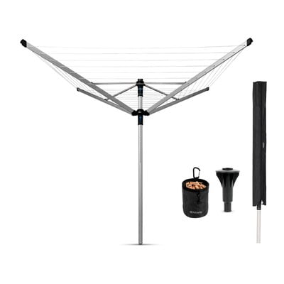 Trójkierunkowe linki mocujące mają antypoślizgowy profil i są odporne na naciąganie się i promieniowanie UV. Ramiona obracają się z łatwością nawet przy pełnym obciążeniu mokrym praniem i mają dodatkowe otwory do wieszania ubrań na wieszakach.