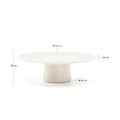 Okrągły stolik ogrodowy Albanella marki Kave Home to harmonijne połączenie stylu i funkcjonalności. Ten wyjątkowy mebel z błyszczącym wykończeniem został wykonany z GFRC – kompozytowego materiału, który łączy cement ze wzmocnieniem z włókna szklanego. Dzięki temu jest nie tylko lekki i odporny na zużycie, ale także zachowuje solidną i trwałą konstrukcję.