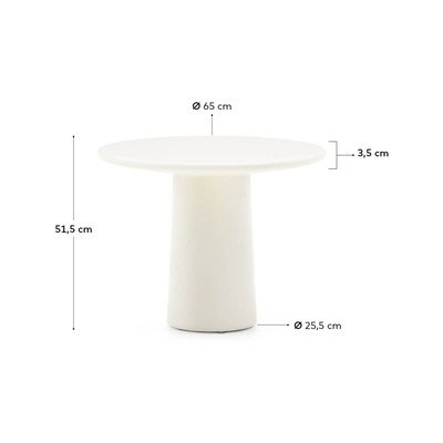 Okrągły stolik ogrodowy Albanella marki Kave Home to harmonijne połączenie stylu i funkcjonalności. Ten wyjątkowy mebel z błyszczącym wykończeniem został wykonany z GFRC – kompozytowego materiału, który łączy cement ze wzmocnieniem z włókna szklanego. Dzięki temu jest nie tylko lekki i odporny na zużycie, ale także zachowuje solidną i trwałą konstrukcję.