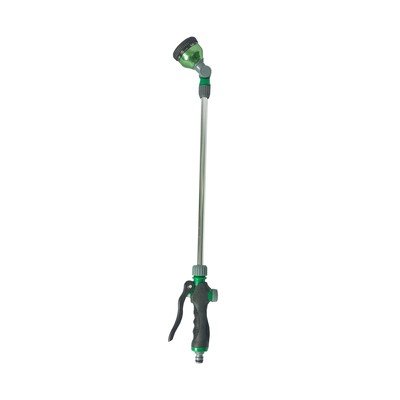 Dzięki dziewięciu różnym ustawieniom głowicy ten pistolet do podlewania oferuje wygodną kontrolę przepływu wody w celu – od delikatnej mgiełki po bardzo silny strumień. Do jego produkcji wykorzystano połączenie aluminium i tworzywa sztucznego. Aby zapewnić wygodną obsługę, jest on również wyposażony w ergonomiczny uchwyt.