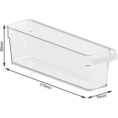 Organizer z pleksi na całą głębokość lodówki. Wąski rozmiar do przechowywania wąskich i mniejszych przedmiotów. Nie wiem jednak na ile jest odporny na...