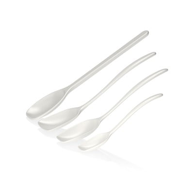 Dzięki czterem różnym rozmiarom ten zestaw łyżek kuchennych marki Rosti poradzi sobie z większością zadań związanych z przygotowywaniem, pieczeniem i serwowaniem potraw. Podobnie jak pozostałe produkty z tej serii, są one wykonane z innowacyjnego tworzywa sztucznego Durostima® charakteryzującego się trwałością, odpornością na pękanie i temperaturę do 150 °C (przez dwie godziny). Ze względu na tę samą kolorystykę, co miski Margrethe, można je dopasować lub stworzyć kontrastujące zestawy.
